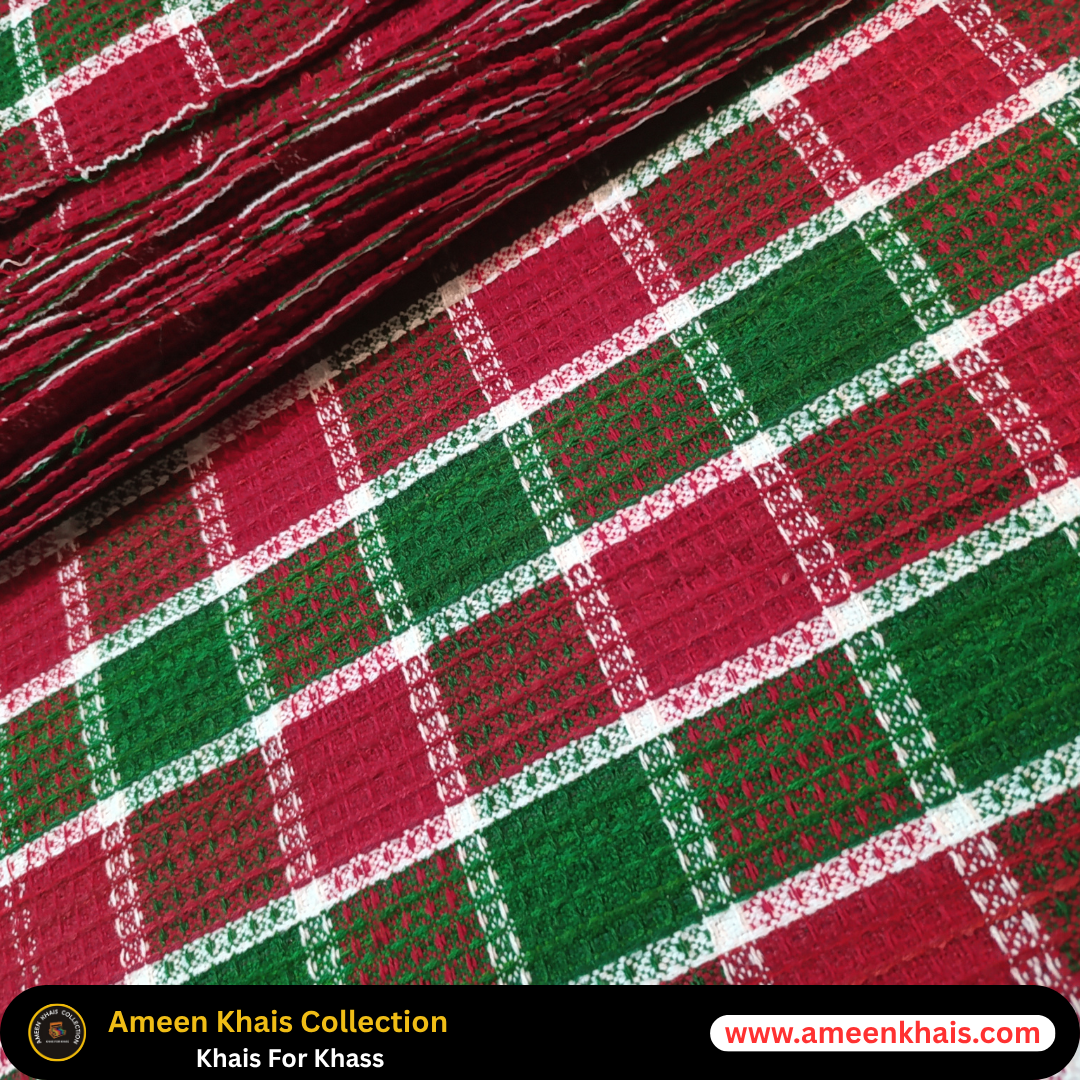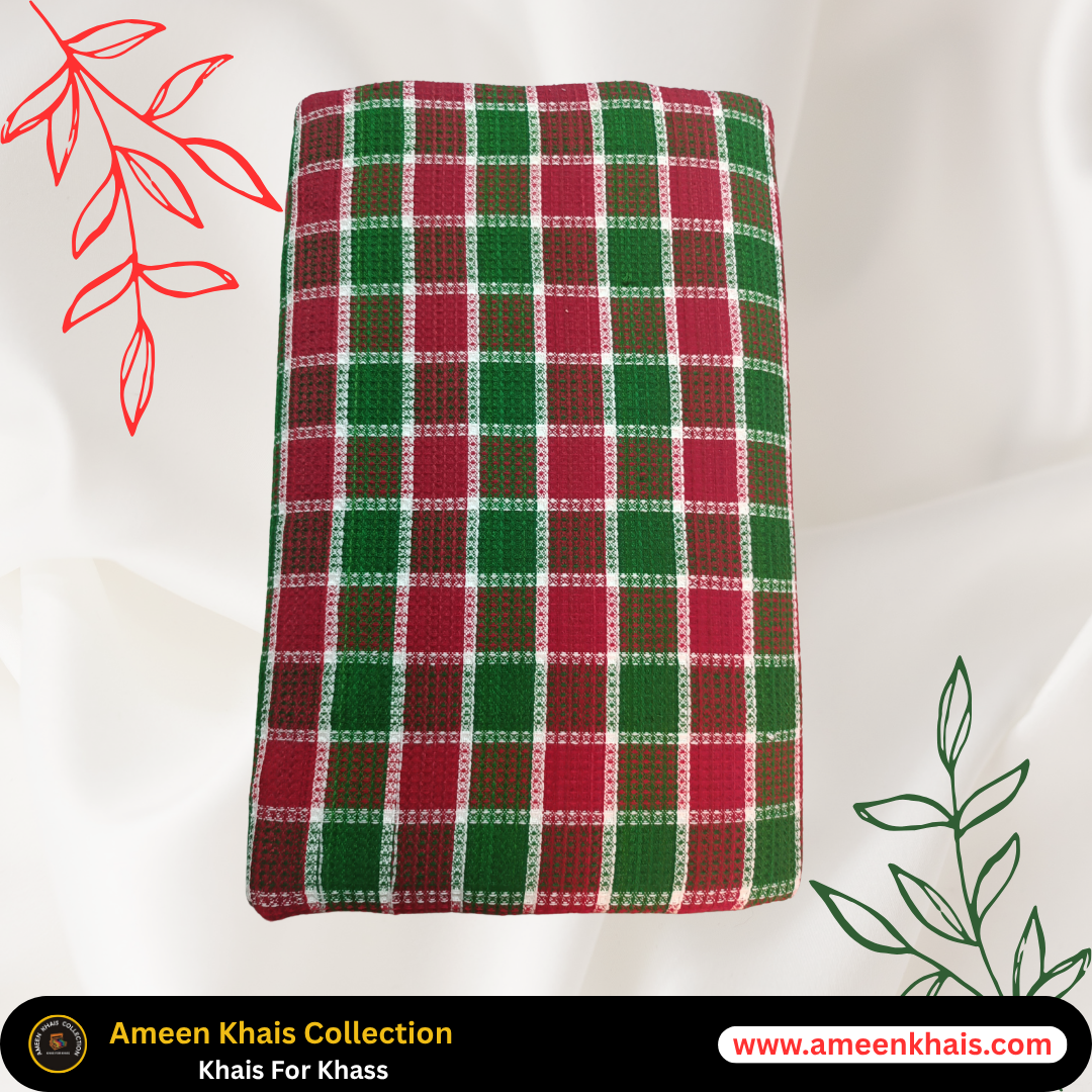 Elevate your space and lifestyle with this beautifully crafted 2-piece Pashmina Wool Khais set from the Ameen Khais Collection. Designed for all-season use, each piece features a rich Red and Green Toli pattern, blending cultural heritage with modern versatility.