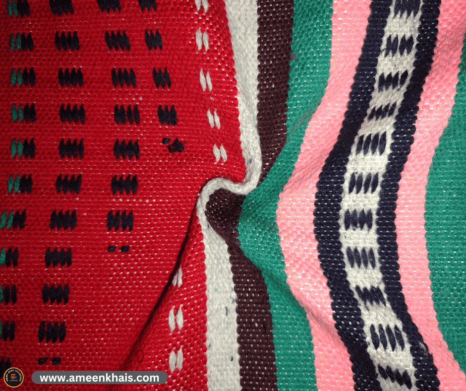 Introducing our Pure Cotton Rug (Dhurrie) from the Best Ameen Khais Collection! Crafted with 100% Pure Cotton, this rug is meticulously handwoven using traditional techniques to preserve its softness. The deep waffle weave design ensures luxurious softness, making it the perfect addition to your home decor.